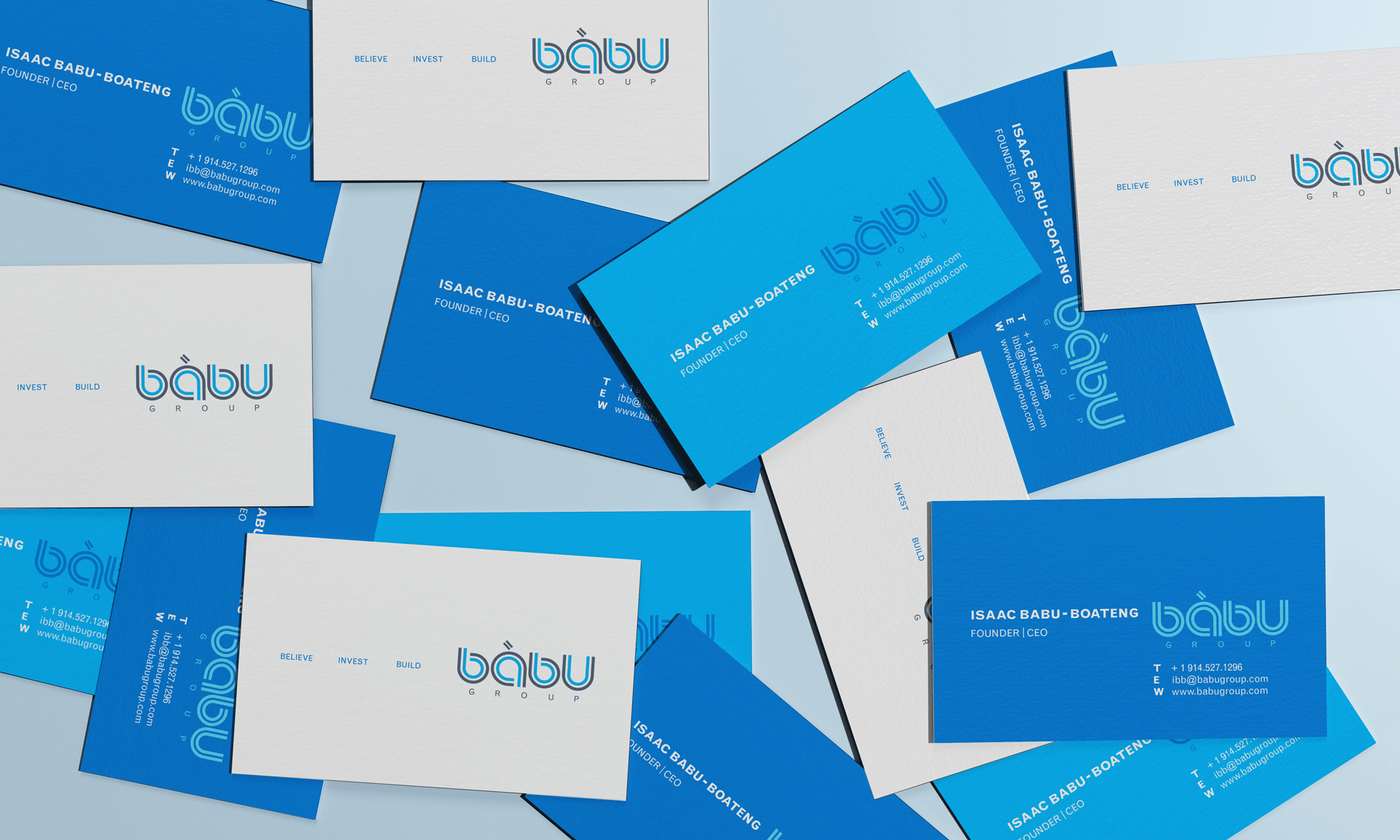 Babu group is a marketing and creative communications agency that seeks to empower their clients through culturally-driven events. Understanding their need to empower clients, we began with the idea of pulsation and reverberation of ones’ voice in the connected world. Our goal was to create an identity that pulsated from within. This symbolism is emphasized in the final logo as it reverberates from a cool blue to a solid grey. A gesture that expresses one's inner voice being heard and becoming concrete. This expression is Babu Group.